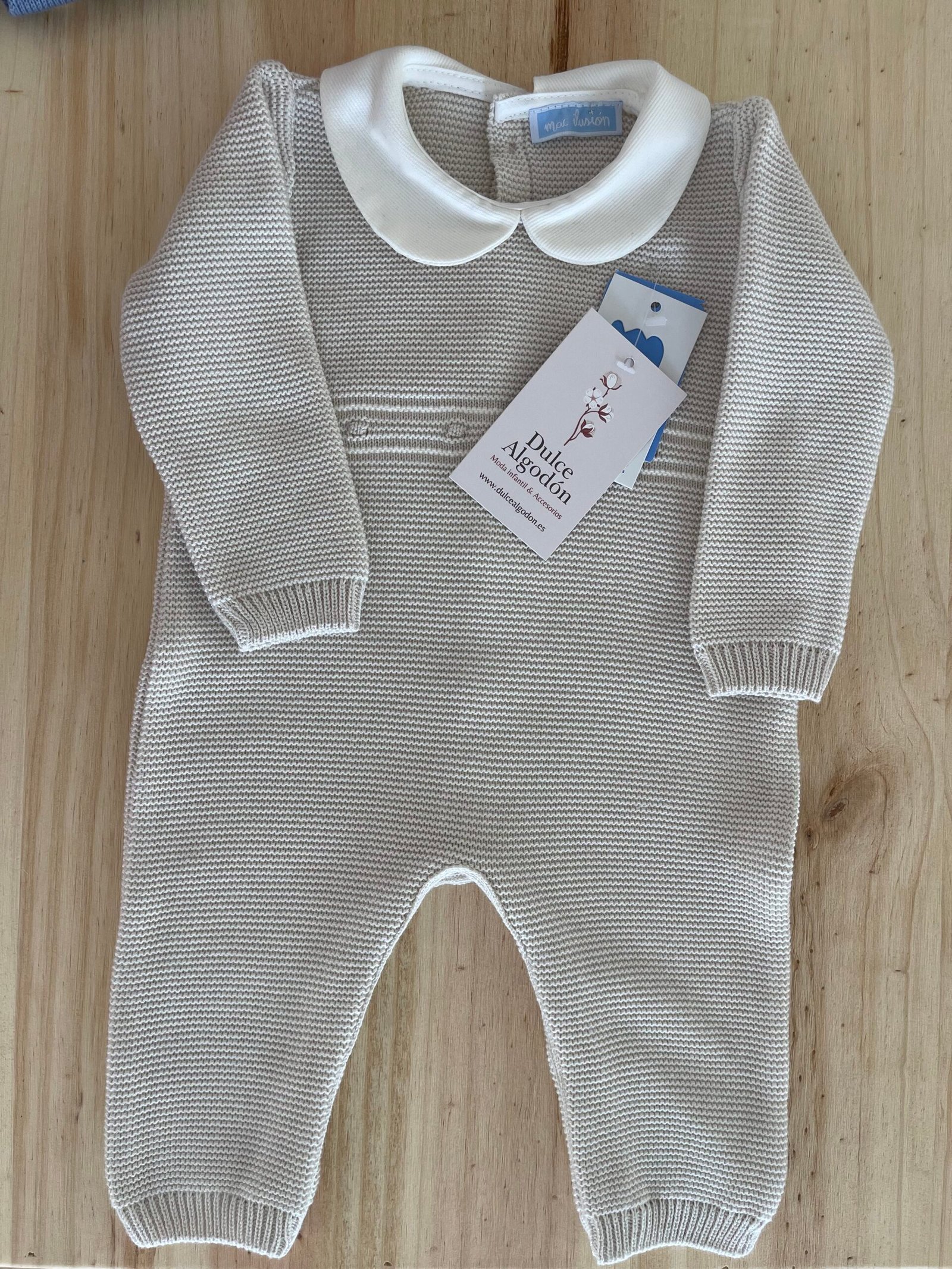 Pelele de punto algodón sin pies con cuello bebé.